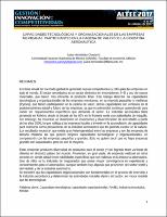 En la actual economía del conocimiento, el éxito de las empresas está en función de su capacidad para innovar. Las empresas en Tecnologías de la Información y Comunicación (TICs) se caracterizan por poseer un importante ... -